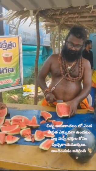 ఎండలోనూ భక్తులకు సేవలందిస్తున్న చిన్న అరుణాచలం ఆలయ వ్యవస్థపకులు